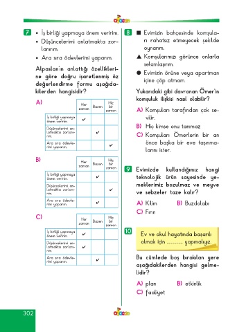 7 • İş birliği yapmaya önem veririm. 8 ■ Evimizin bahçesinde komşula-