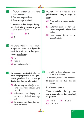 Page 303 - ATA YAYINCILIK 3. Sınıf Afacan Soru Bankası