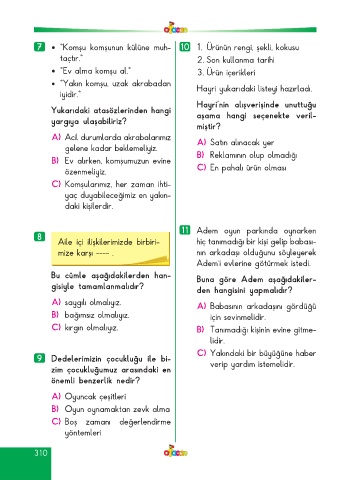 Page 310 - ATA YAYINCILIK 3. Sınıf Afacan Soru Bankası