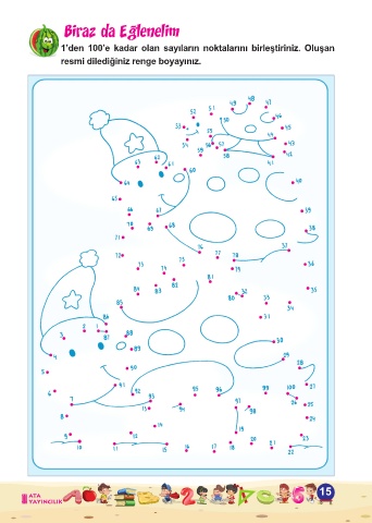 1’den 100’e kadar olan sayıların noktalarını birleştiriniz. Oluşan resmi dilediğiniz renge boyayınız. 15 15