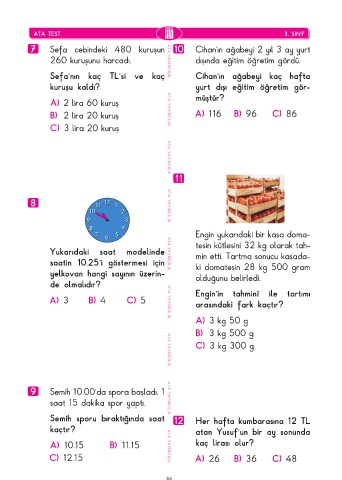 Page 67 - ATA YAYINCILIK 3. Sınıf Ata Test