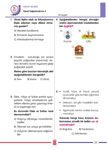 1. Okula ilişkin istek ve ihtiyaçlarımızı 4. Aşağıdakilerden hangisi ekmeğin