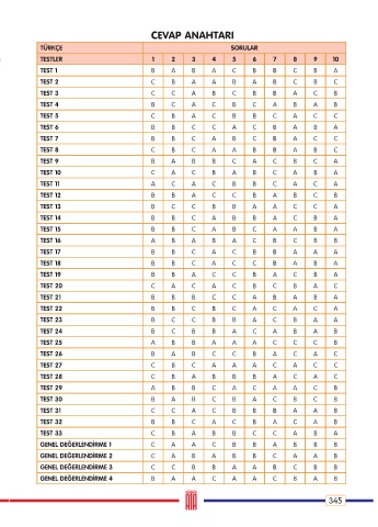 GENEL DEĞERLENDİRME 2 C A B A B B C A A B