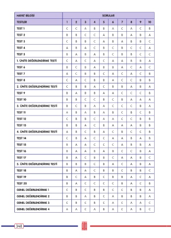 3. ÜNİTE DEĞERLENDİRME TESTİ B C B A A C C C B A