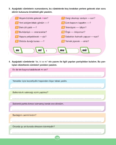 4. Aşağıdaki cümlelerde “de, ki ve mi” nin yazımı ile ilgili yapılan yanlışlıkları bulalım. Bu yan-