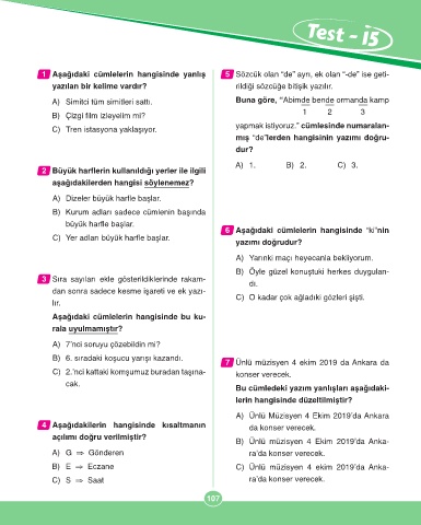 1 Aşağıdaki cümlelerin hangisinde yanlış 5 Sözcük olan “de” ayrı, ek olan “-de” ise geti-