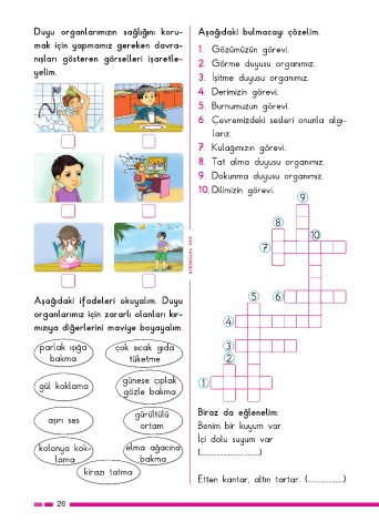 Duyu organlarımızın sağlığını koru- Aşağıdaki bulmacayı çözelim.