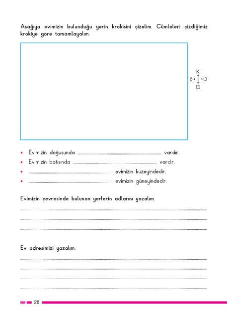 Aşağıya evimizin bulunduğu yerin krokisini çizelim. Cümleleri çizdiğimiz