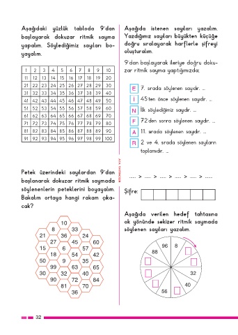 başlayarak dokuzar ritmik sayma Yazdığımız sayıları büyükten küçüğe