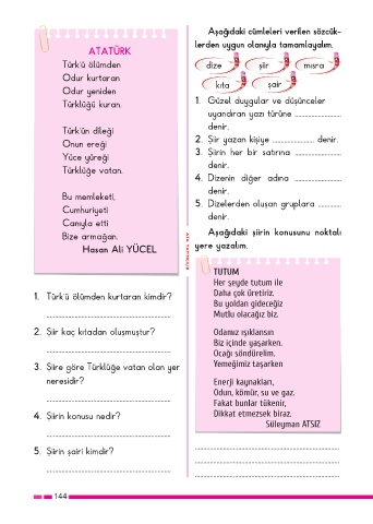 Page 145 - ATA YAYINCILIK 3. Sınıf Etkinlik Çalışma Yaprakları Türkçe