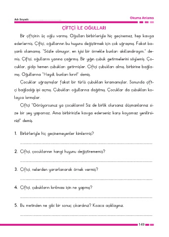 miş. Çiftçi, oğullarını yanına çağırmış. Bir yığın çubuk getirmelerini söylemiş. Ço-
