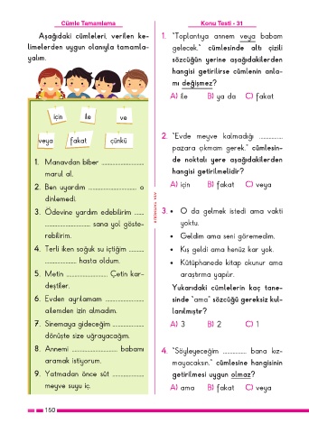 2. Ben uyardım ................................... o A) için B) fakat C) veya