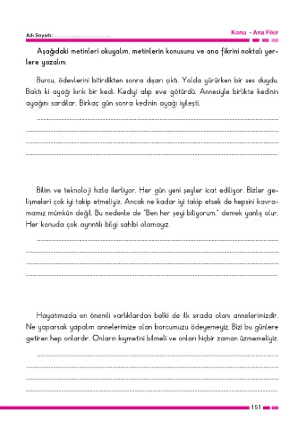 Aşağıdaki metinleri okuyalım, metinlerin konusunu ve ana fikrini noktalı yer-