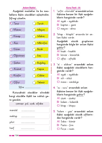 Anlam İlişkisi Konu Testi - 33
