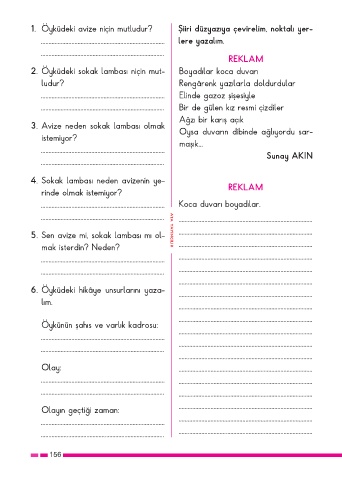 6. Öyküdeki hikâye unsurlarını yaza- ........................................................................................