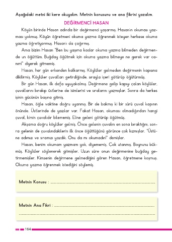 tirmemişler. Kimsenin değirmene gelmediğini gören Hasan, öğretmene koşmuş.
