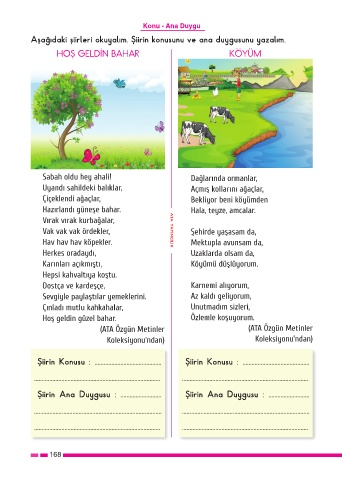 Aşağıdaki şiirleri okuyalım. Şiirin konusunu ve ana duygusunu yazalım.