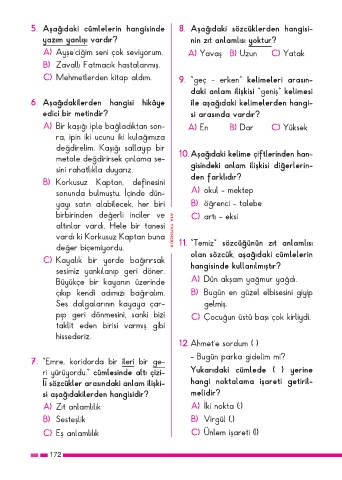 değer biçemiyordu. 11. “Temiz” sözcüğünün zıt anlamlısı