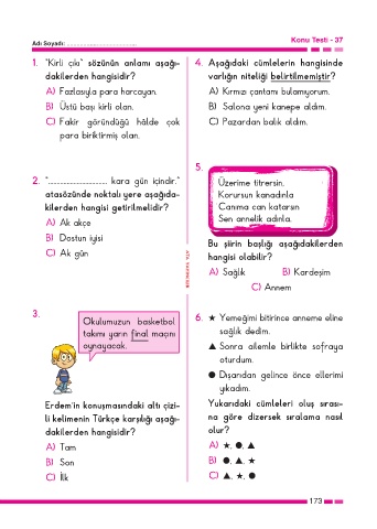 Page 174 - ATA YAYINCILIK 3. Sınıf Etkinlik Çalışma Yaprakları Türkçe
