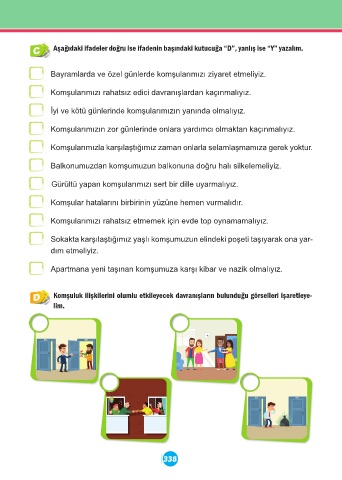 Komşuluk ilişkilerini olumlu etkileyecek davranışların bulunduğu görselleri işaretleye-