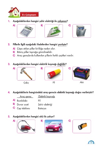 5. Aşağıdakilerden hangisi akü ile çalışır?