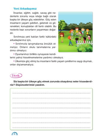 Sınıfımıza yeni katılan farklı kültürdeki