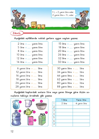 2 litre = ....... yarım litre 15 litre = ....... yarım litre