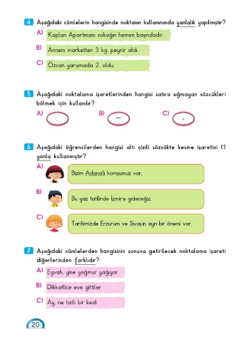 4 Aşağıdaki cümlelerin hangisinde noktanın kullanımında yanlışlık yapılmıştır?