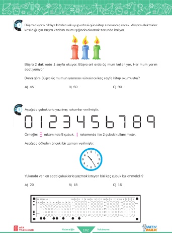 Buna göre Büşra üç mumun yanması süresince kaç sayfa kitap okumuştur?