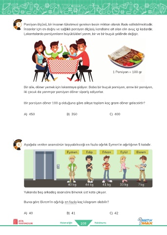 4 Aşağıda verilen asansörün taşıyabileceği en fazla ağırlık Eymen’in ağırlığının 5 katıdır.