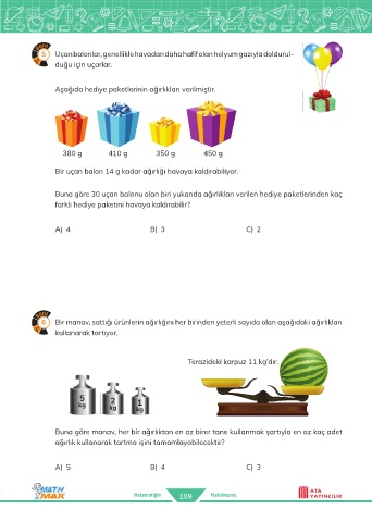 6 Bir manav, sattığı ürünlerin ağırlığını her birinden yeterli sayıda olan aşağıdaki ağırlıkları