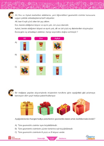 4 Ali, Ece ve Aykut marketten aldıklarını, yeni öğrendikleri geometrik cisimler konusuna