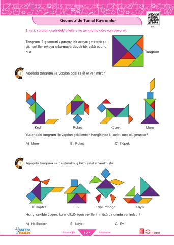 2 Aşağıda tangram ile oluşturulmuş bazı şekiller verilmiştir.