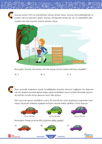 yerden 140 cm yüksekte oluyor. Zeynep, elmalardan almak için 30 cm yükseklikte olan