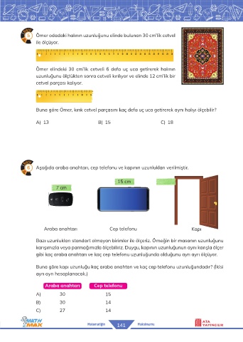 6 Aşağıda araba anahtarı, cep telefonu ve kapının uzunlukları verilmiştir.