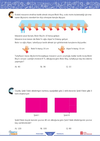 5 Evdeki masanın etrafına lastik almak isteyen Bekir Bey, evde metre bulamadığı için ma-