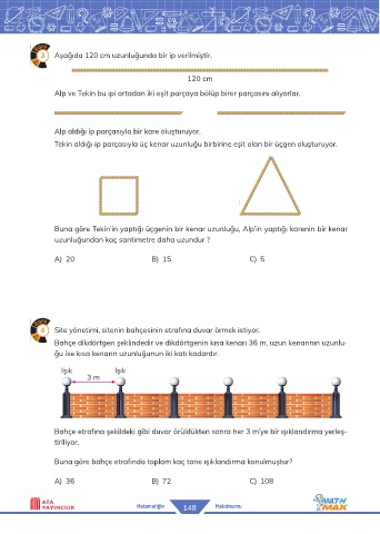 Buna göre Tekin’in yaptığı üçgenin bir kenar uzunluğu, Alp’in yaptığı karenin bir kenar