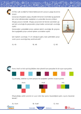 İpin toplam uzunluğu 72 cm olduğuna göre, kare şeklindeki çerçe-