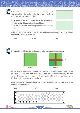 7 Polat, kare şeklindeki yan yana iki bahçeyi satın alıp iki bah-
