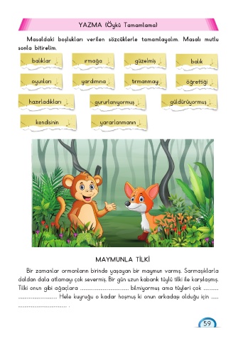 Masaldaki boşlukları verilen sözcüklerle tamamlayalım. Masalı mutlu