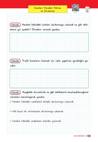 Etkinlik Hareket hâlindeki cisimleri durdurmaya çalışmak ne gibi tehli-