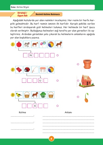 Aşağıdaki kutularda yer alan resimleri inceleyiniz. Her resim bir harfe kar-