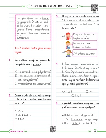 Page 142 - ATA YAYINCILIK 3. Sınıf Gıcır Gıcır Türkçe