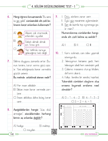 4. BÖLÜM DEĞERLENDİRME TEST - 1