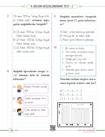 C) 23 Nisan 1920’de Türkiye büyük 10. 1. Bir çekiçle çivi buldu.