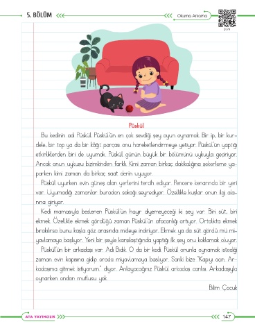 Bu kedinin adı Püskül. Püskül’ün en çok sevdiği şey oyun oynamak. Bir ip, bir kur-