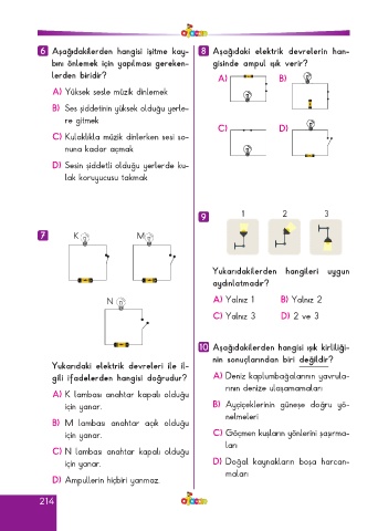 6 Aşağıdakilerden hangisi işitme kay- 8 Aşağıdaki elektrik devrelerin han-