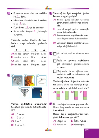 Page 219 - ATA YAYINCILIK 4. Sınıf Afacan Soru Bankası
