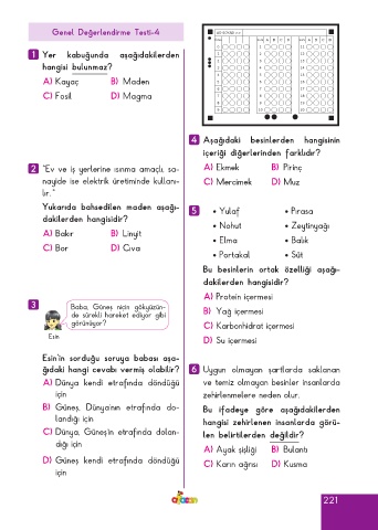 Page 221 - ATA YAYINCILIK 4. Sınıf Afacan Soru Bankası