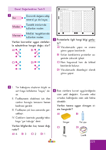 Page 225 - ATA YAYINCILIK 4. Sınıf Afacan Soru Bankası